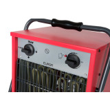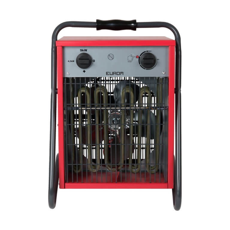 De Eurom EK9002 is een elektrische ventilatorkachel op krachtstroom (400V) voor gebruik in werkplaats, schuur en garage. Door het grote vermogen van 9000 Watt is de ruimte binnen een mum van tijd heerlijk op temperatuur.